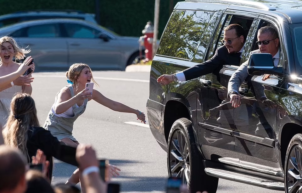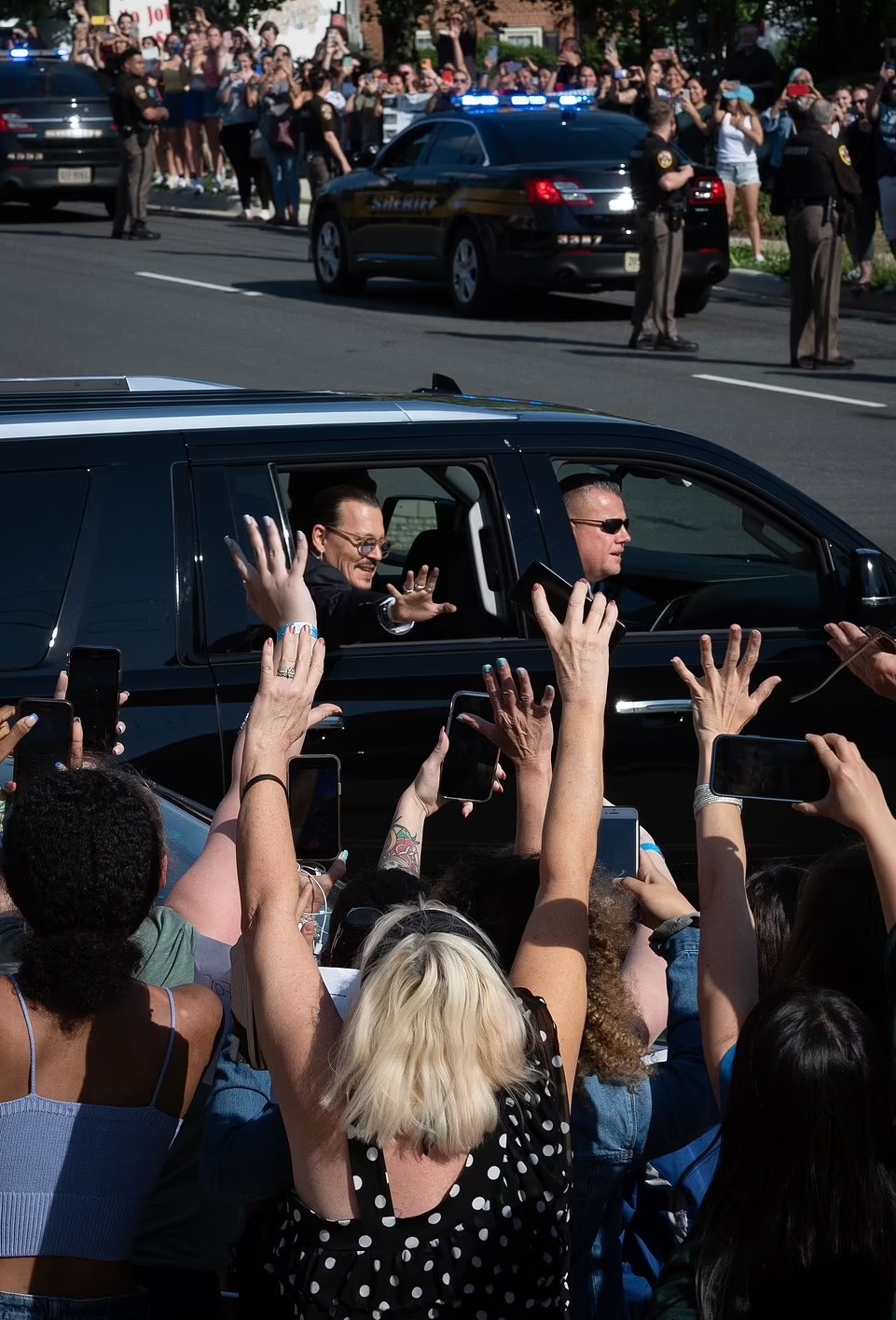 Johnny Depp has drawn cheers from the crowd outside the Fairfax courthouse following the end of Thursday proceedings.