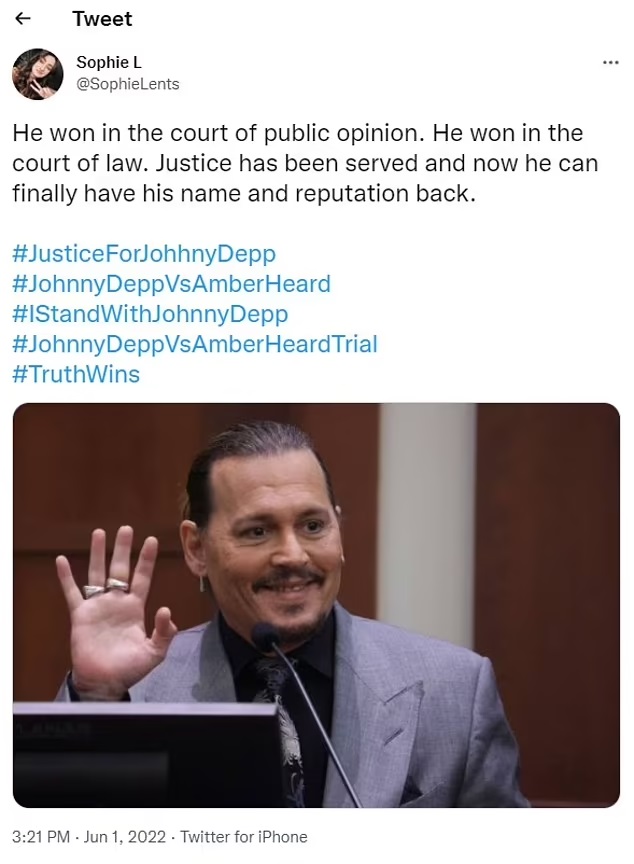 The third expressed: “He did it, he won! His voice has been heard and he’s gotten justice! I’m so unbelievably proud of you Johnny!”