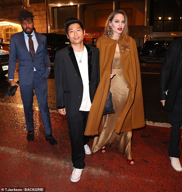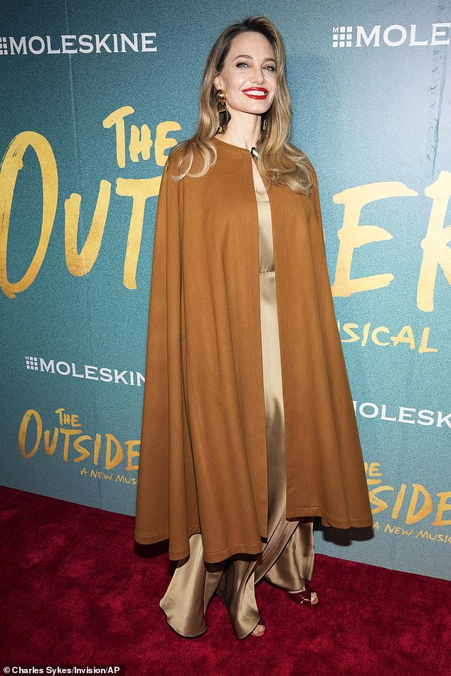 The 48-year-old Oscar winner stunned in her red lipstick and beautiful golden hair that matched her evening cape gown immaculately. She shared on Thursday how she was at the Broadway premiere of The Outsiders musical adaptation that she happened to be producing.