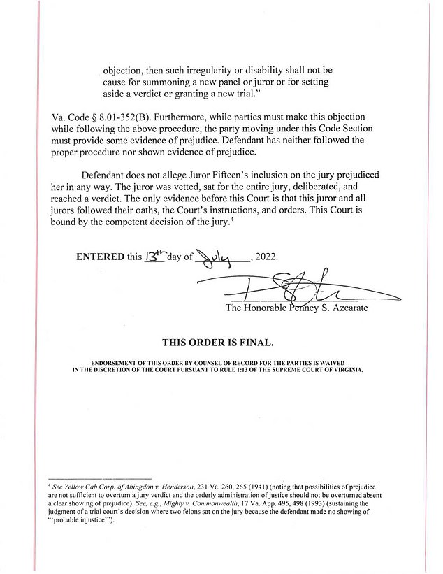 Recently released court documents obtained by Daily Mail revealed how Judge Penny Azcarate reportedly denied all of the arguments put forward by Amber Heard and her legal team.