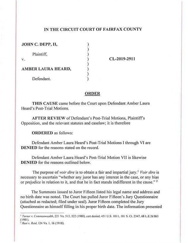 Heard’s post-trial motions were included in a 43-page long memorandum that argued against the verdict and how unfair it was.
