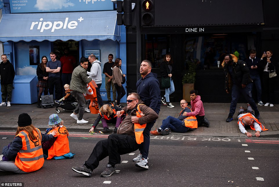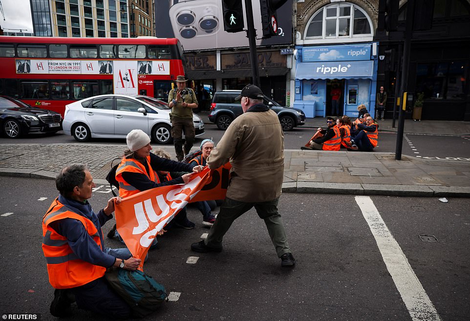 A furious van driver was seen dragging out protesters alongside many others for blocking the streets and making it hard for people to pass in London.