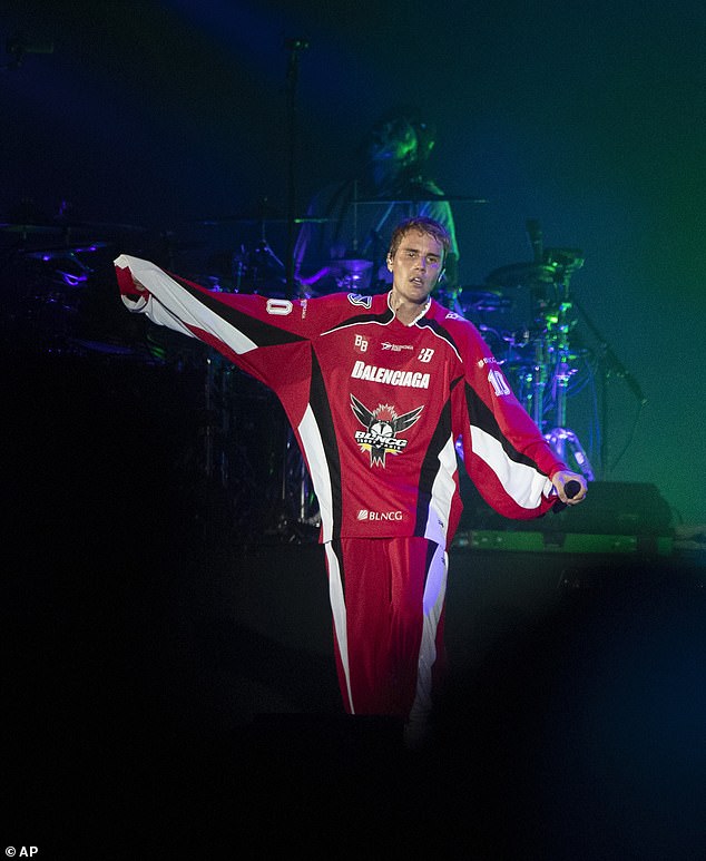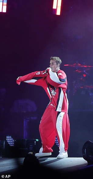 The 27-year-old pop star from Canada wore a red-toned jersey, pairing the look with athletic pants while dancing and singing on stage in front of a crowd that simply couldn’t get enough.