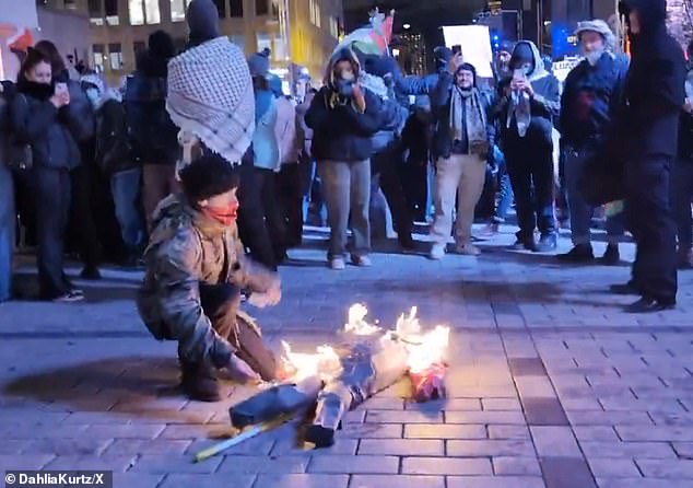 Shocking images showed protesters taking down cars by setting them ablaze and also smashing shop windows and burning an effigy of the Israeli PM Benjamin Netanyahu as the city erupted with mega violence.