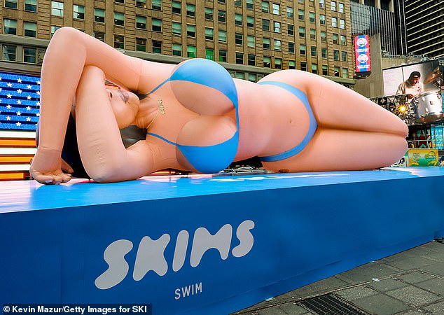 Clearly, the mega installation is celebrating her latest swimwear collection, but the bizarre blown up doll was called out as a desperate move in terms of getting more people excited for the launch.