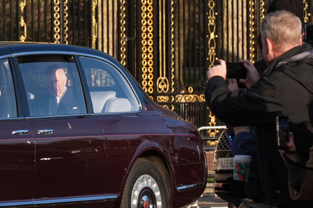 The King was pictured arriving at the palace for the pre-Christmas lunch inside his car with a private secretary by his side.