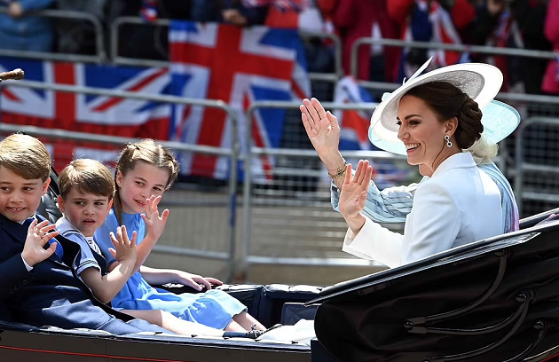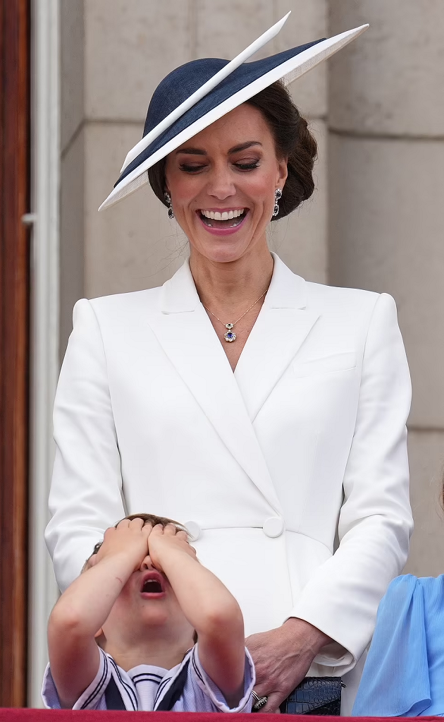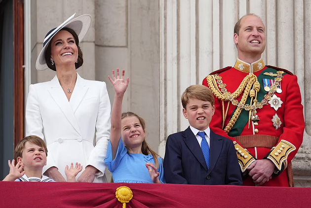 Prince George, 8, Princess Charlotte, 7, and Prince Louis, 4 also joined other Royals on the Buckingham Palace balcony.