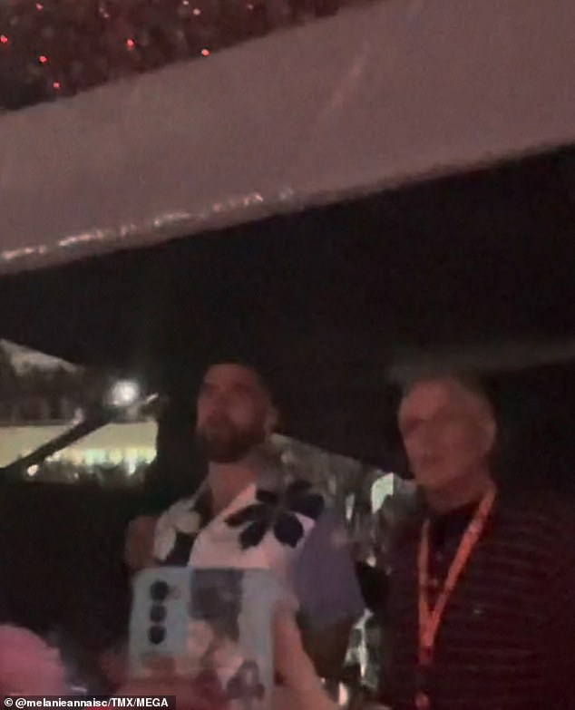 Kelce stood out in the giant sea featuring Swifties and he wore a bright white button-down t-shirt with a pair of gray colored shorts. His best pal also happened to be by his side throughout the evening, making it a joyous occasion for all to enjoy.