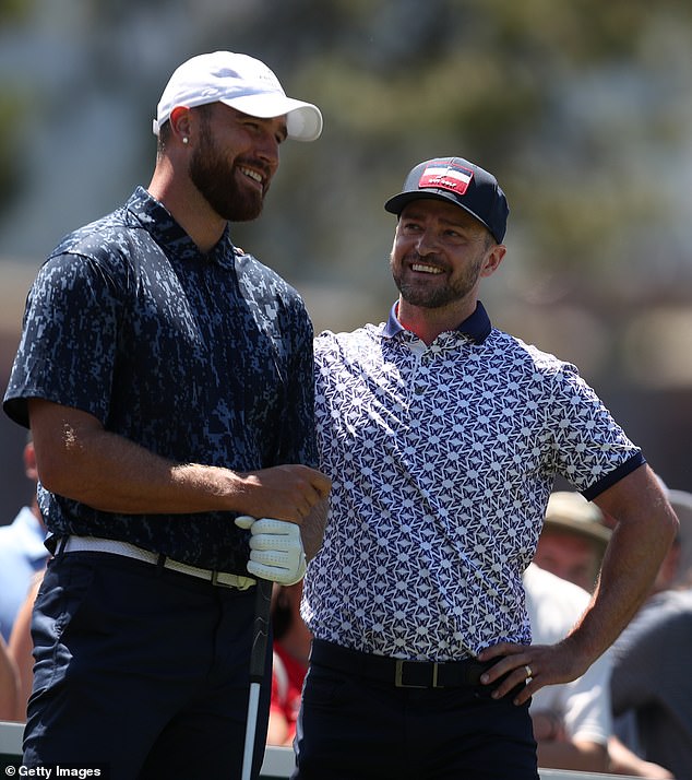 A glum-looking Travis Kelce was pictured attending and leaving a Justin Timberlake concert all alone.