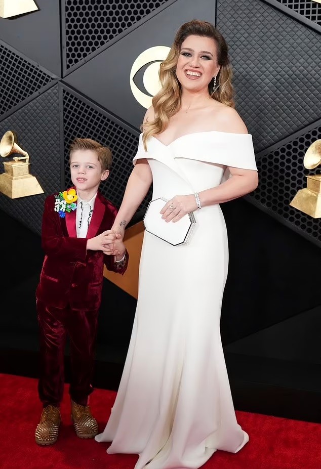 Kelly Clarkson was pictured smiling from ear to ear as she attended the 2024 Grammys with her young son.