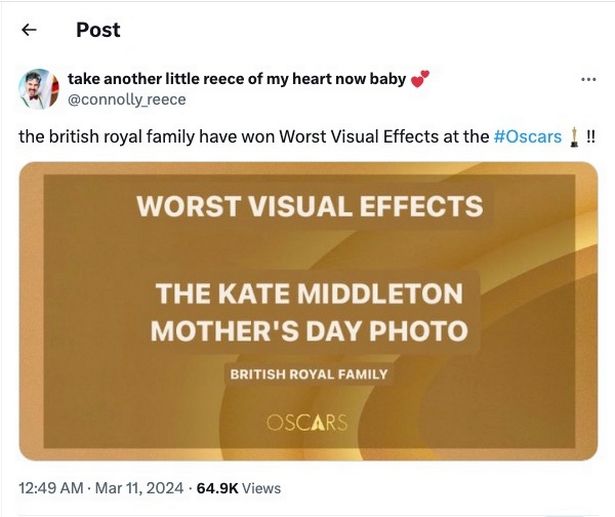 The entire Royal Family found themselves being mocked ruthlessly across social media, not to mention the Oscars too which happened to air just hours after the picture was released online.