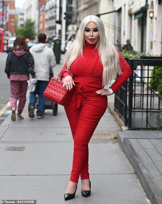 Her confidence was oozing in her sultry number and this featured crisscross straps which hugged each inch of her body, not to mention the eye-popping curves.