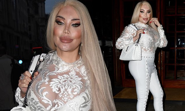 Jessica Alves just put up a very busty display in a daringly low-cut cocktail attire while enjoying a boozy night out with her pals.