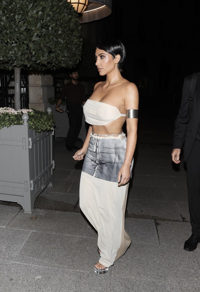 The star had Paris all tied up with her new look, not to mention shorter than ever hair. Kim turned heads on Sunday night while stepping out of her Ritz Hotel in a daring vintage Maison Martin Margiela ensemble that rivaled Bianca’s barely there looks.
