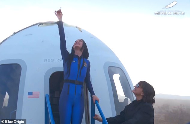 Upon arriving back on planet Earth, each of the women was seen exiting the rocket one by one. This is the moment when Katy Perry shocked many by getting down and holding a daisy up to the sky for a couple of seconds before she kissed it. She shared how it was in honor of her daughter.