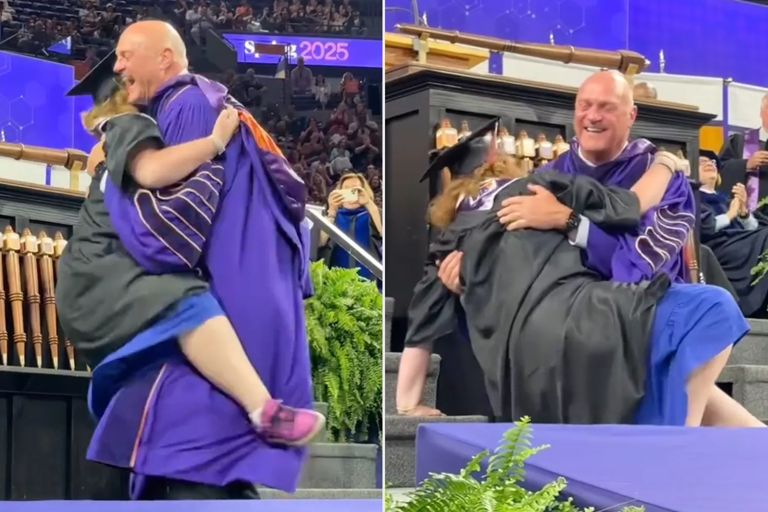 Clemson University President Jim Clements saw the graduation of a lifetime when his youngest daughter happily and mistakenly knocked him down while accepting her diploma.