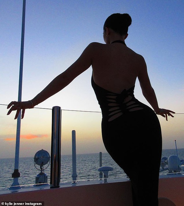 The billionaire makeup mogul turned up the heat in a sultry black attire that put her beautifully toned back and silhouette on display.