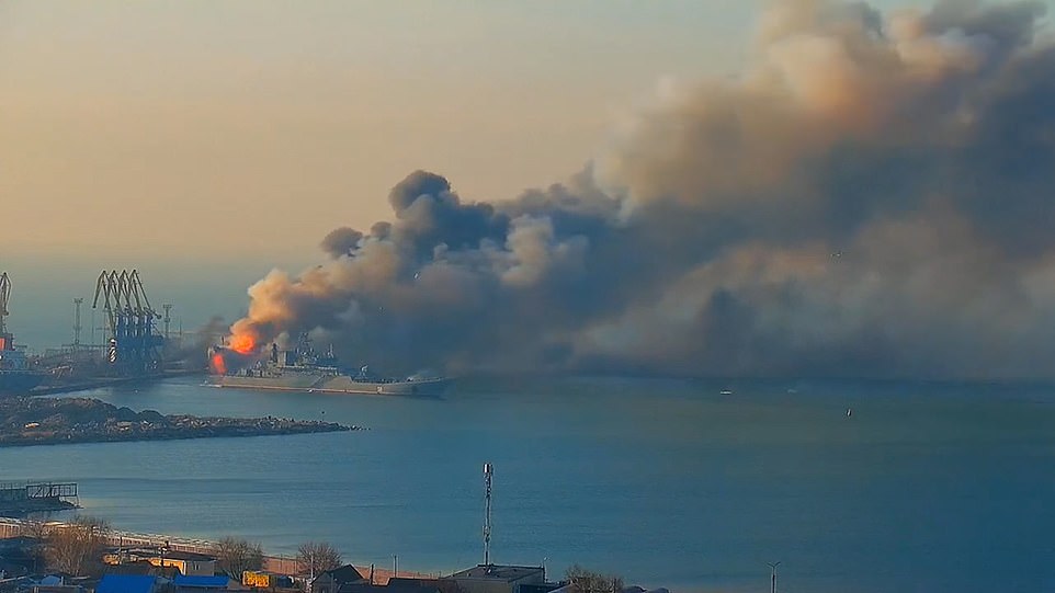According to local media reports, a huge ball of flames was witnessed with so much smoke seen arising from Berdyansk recently as authorities in Ukraine confirmed the ship’s destruction.