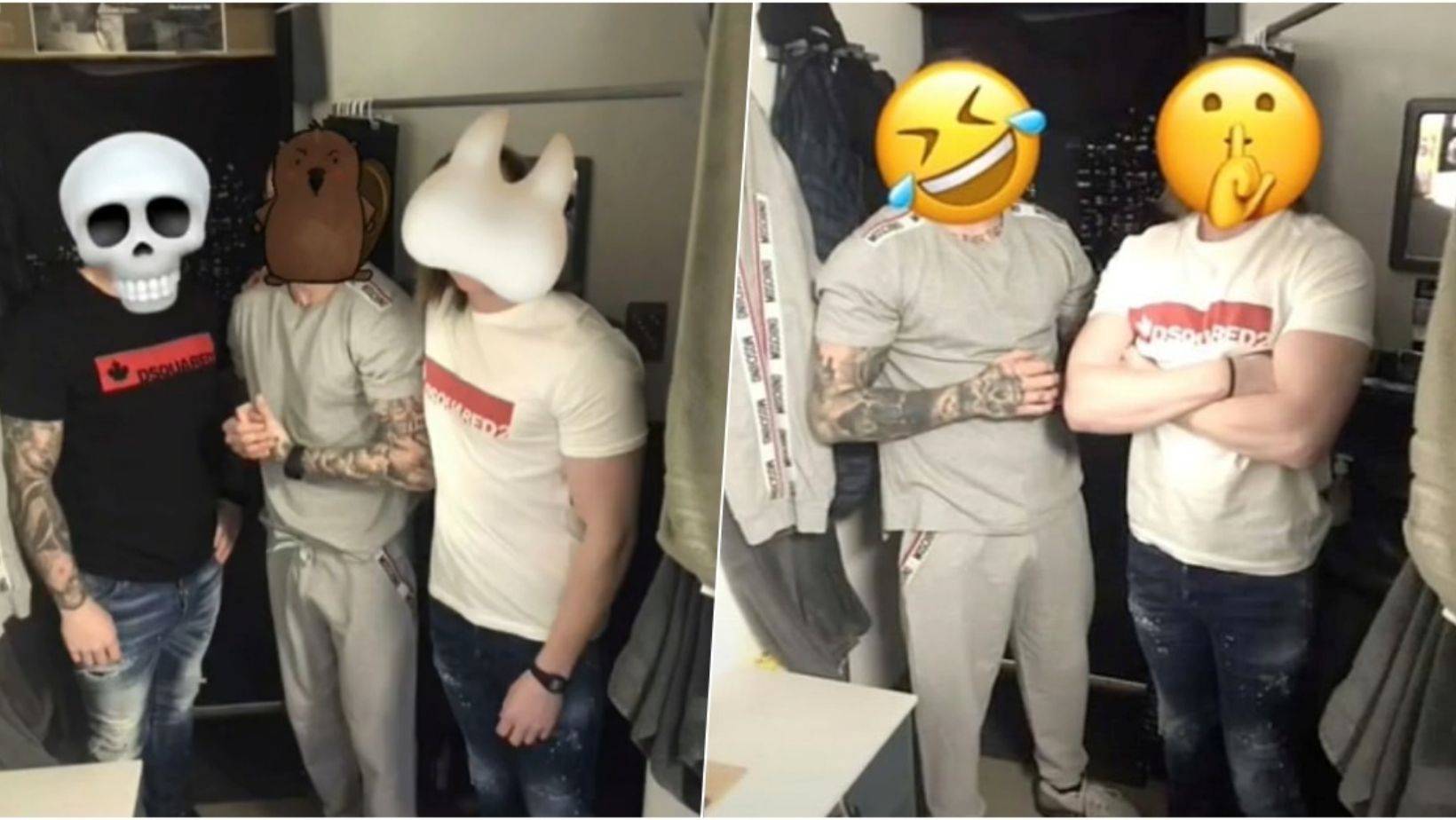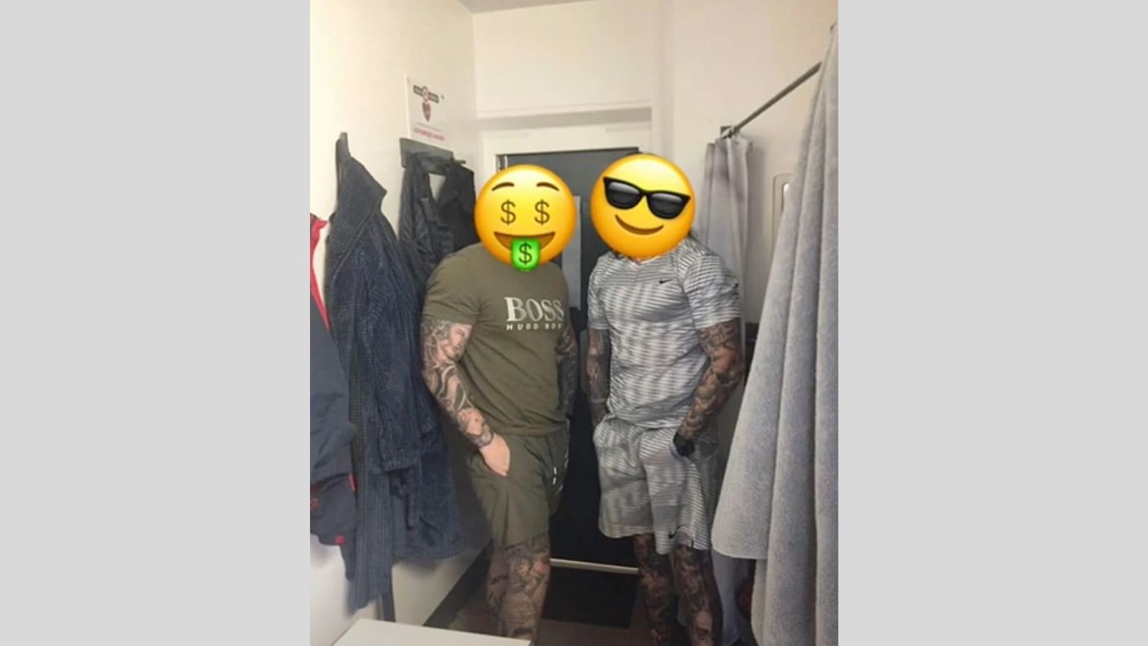 In another video, he shares images of multiple prisoners dripping in designer gear. They are posing in groups in DSquared t-shirts – which retail for around $135 a pop – and loungewear sets from Nike and Hugo Boss. Their faces are covered by emojis in every picture.