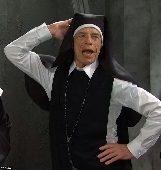 Sir Mick Jagger left Saturday Night Viewers shocked beyond belief after posing himself as a racy nun who sleeps with others.