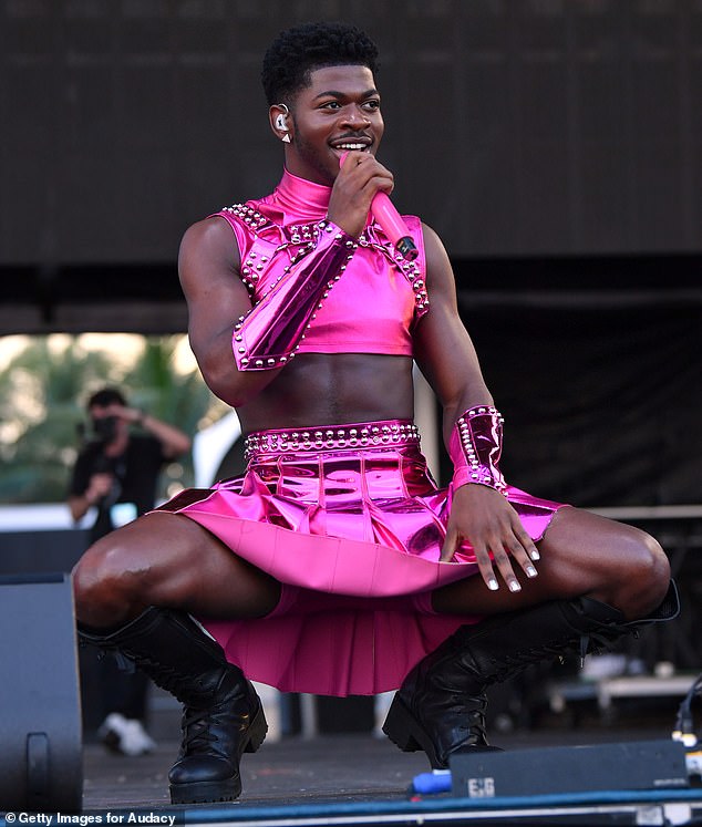 Fashion critics referred to the outfit as wild and very eye-catching as Lil Nas X also opted to flatter audiences with his long pair of black combat boots.