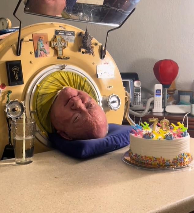 Despite recovering from Polio, his body continued to be in a stage of paralysis from his new downwards and therefore could stay inside an iron lung.