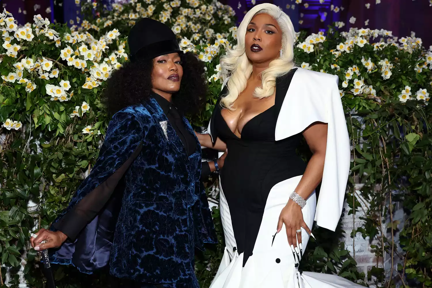 Lizzo channeled more classical looks as she made her way up the iconic steps in a gown that featured a black corset that showed off her cleavage and transitioned into a white fishtail bottom that flared out around her.