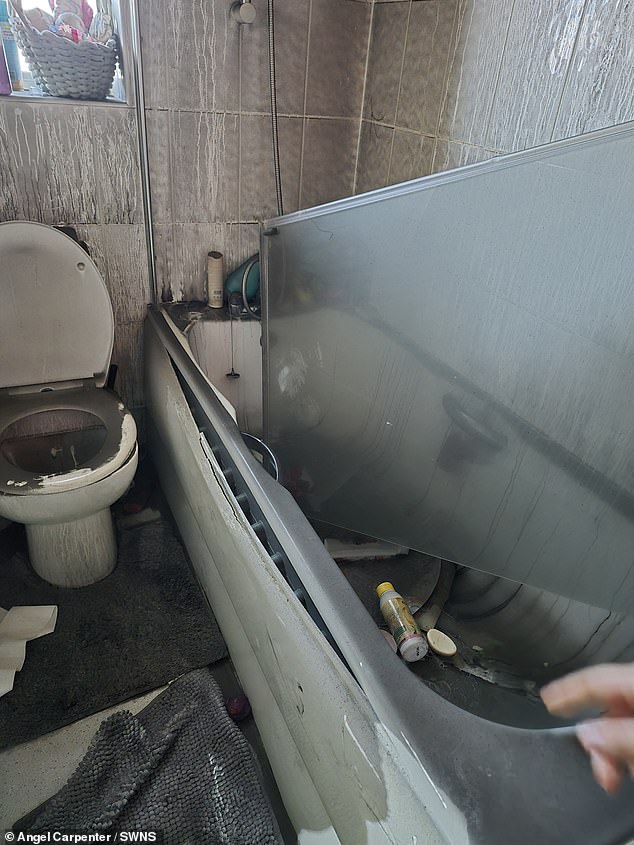 The kitchen’s oven was covered in ash and the wallpaper was so charred that it began to peel off. The living room featured a gaping hole inside the wall and then a door could be seen lying down on the ground after being burned off all the hinges.