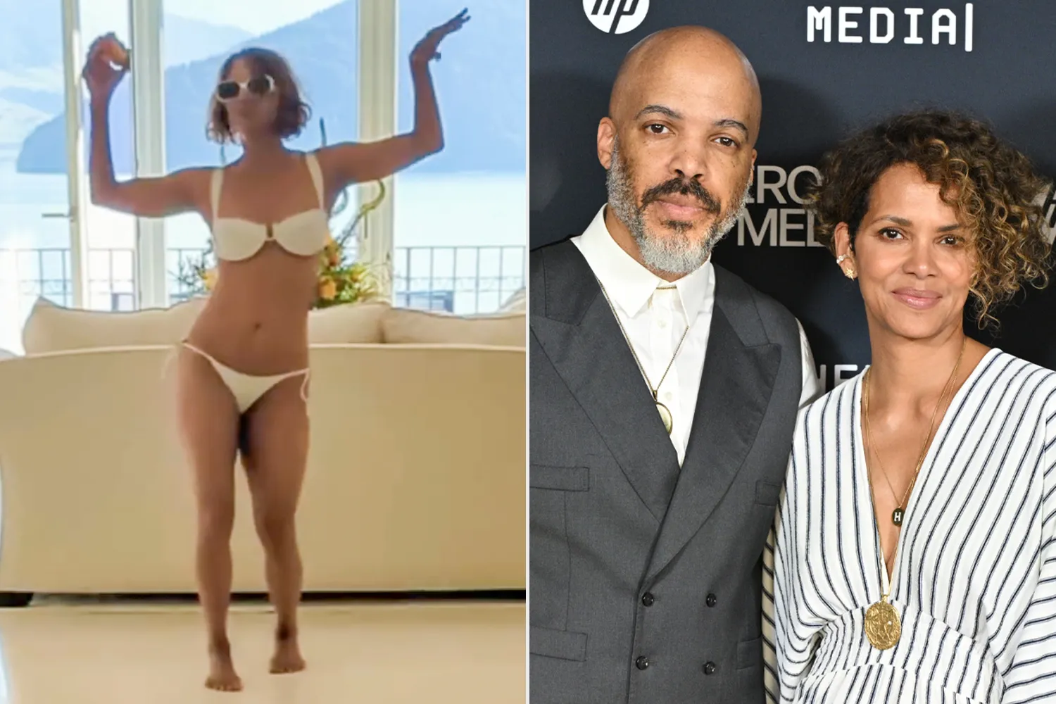 Towards the end of the clip, Hunt giggled as Berry laughed while swiftly running out of frame when her string bottoms came down and after getting loose.