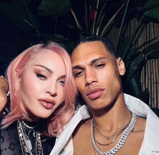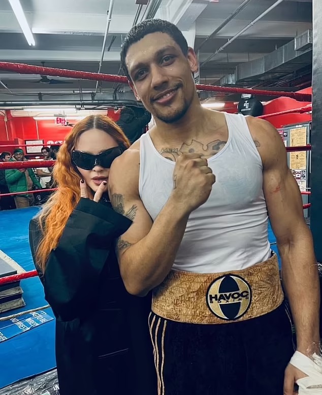The pair were pictured together next to a boxing ring with Madonna clutching the young man’s arm.