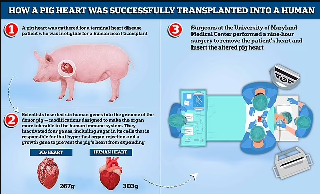 Bennet receiving a pig’s heart transplant was the first genetically engineered experiment of its kind, confirmed reports.