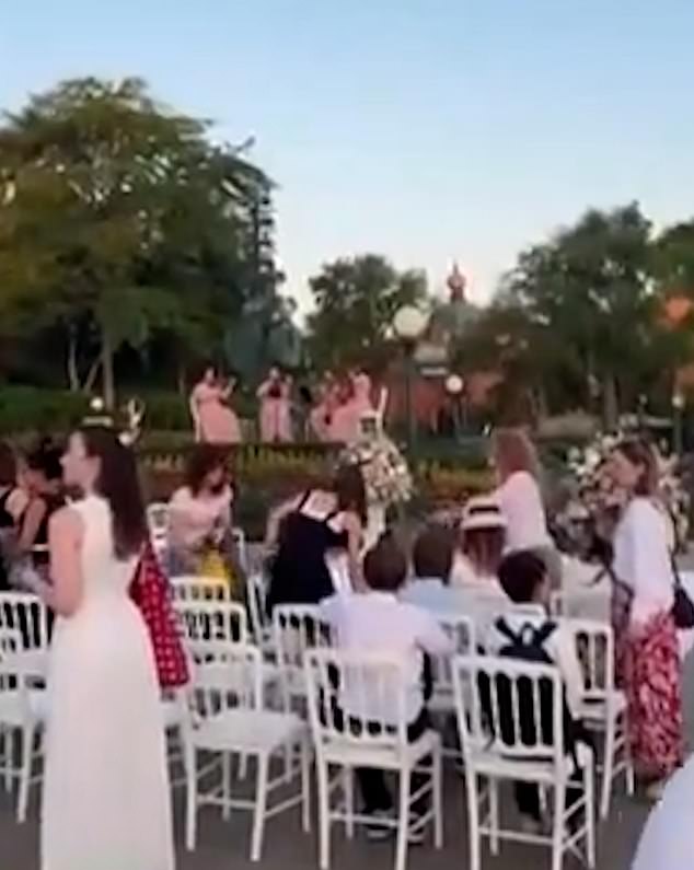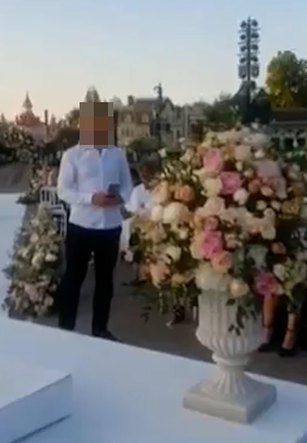 Part of the amusement park in Paris was privately hired for the fake ceremony ahead of it being open to the public, and reportedly unfolded in front of the iconic Sleeping Beauty castle alongside an estimated 100 guests.