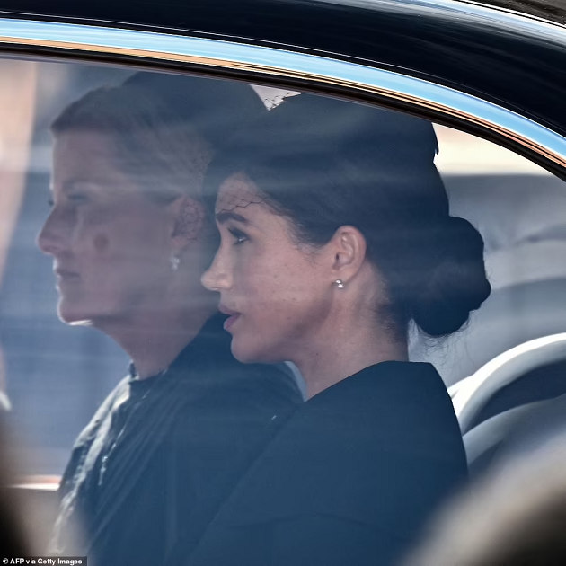 Meghan was seen traveling in the procession by car as she joined the Countess of Wessex.