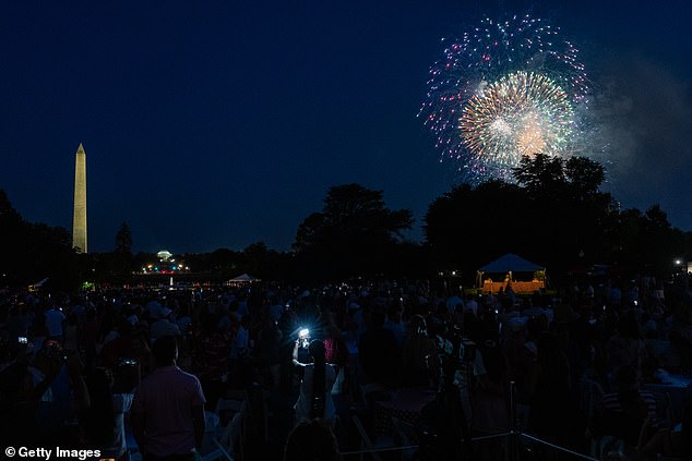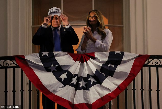 The Trumps ended up slipping into the West Wing but soon returned to watch the yearly fireworks display that took over the National Mall.