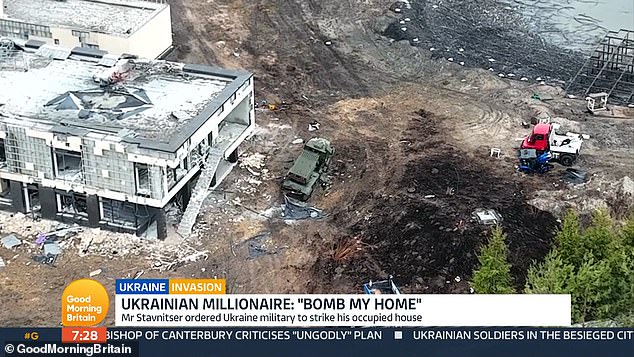 A millionaire from Ukraine has reportedly ordered the destruction of his own home after finding out it was used by looting Russian forces as a base.