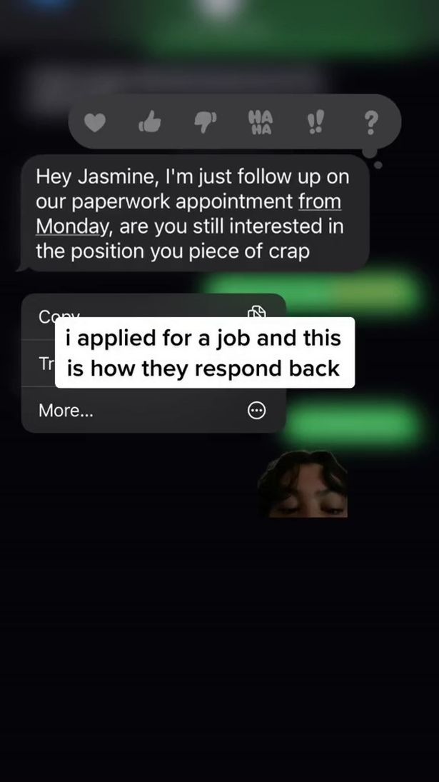 The TikTok user who goes by the name Jasmine says she had been busy applying for a number of jobs recently. And while she may have gotten some unique responses from her potential employers in the past, she believes it was not like this on experience.