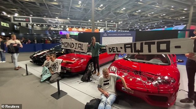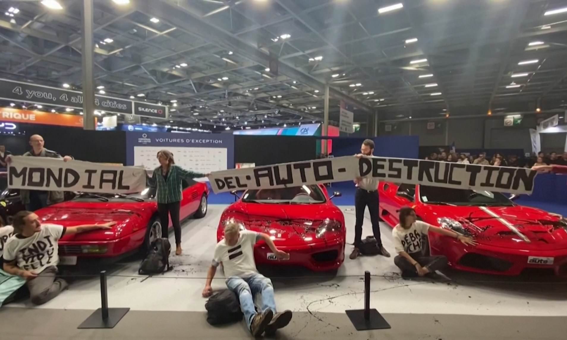 Eco activists stormed the Paris Motor Show today and tried their best to get their point across, moments before they were arrested by authorities.