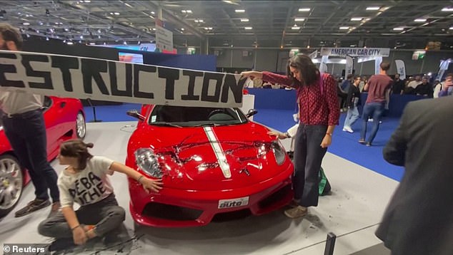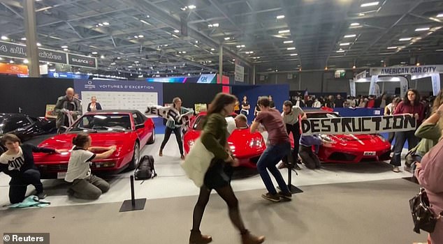 Out of the 12 activists that stormed the showroom, around found of them sat on the ground and covered their hands with super glue and then opted to stick them onto the Ferrari models.