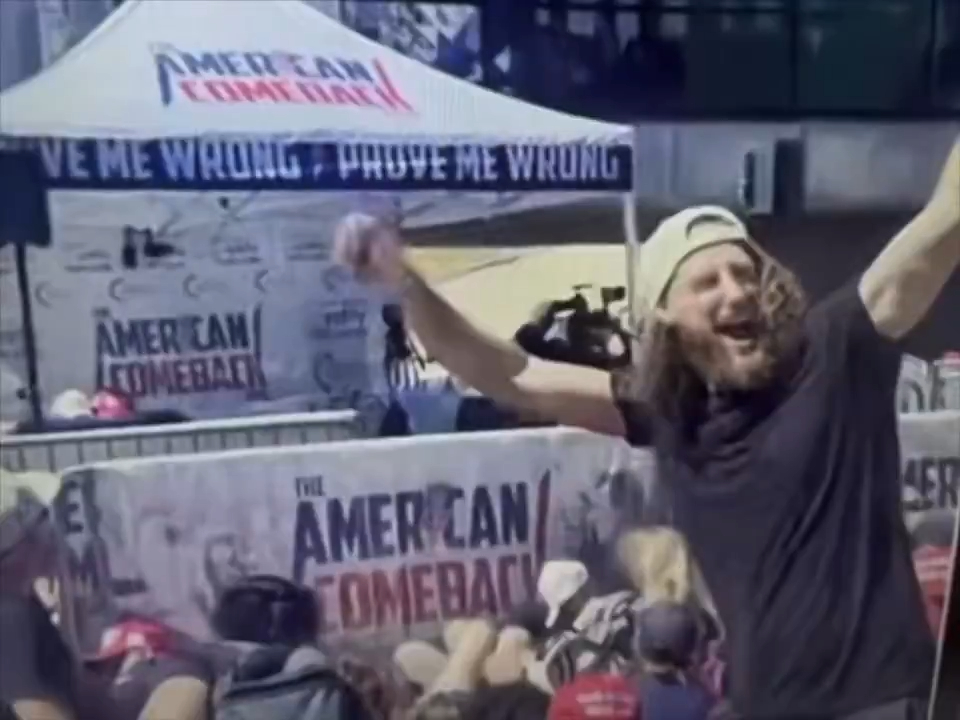 He was seen filming and shouting ‘USA, USA, USA!’- with both fists in the air and mirroring President Trump’s rally cry after he was nearly assassinated at the rally in Butler, Pa, last summer.