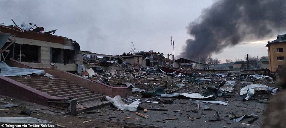 Heavy explosions and loud gunfire filled the air as large smoke could be seen on the outskirts of the nearby city of Lviv which was reportedly deemed to be a safe haven for refugees trying to escape the war-torn country.