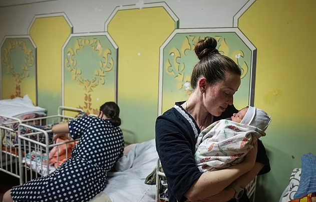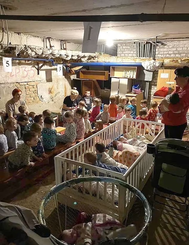 In pictures taken at underground shelters and basements in Ukraine, children and babies can be seen packed in small rooms. Meanwhile, young mothers are being forced to give birth in unbearable conditions away from their partners.