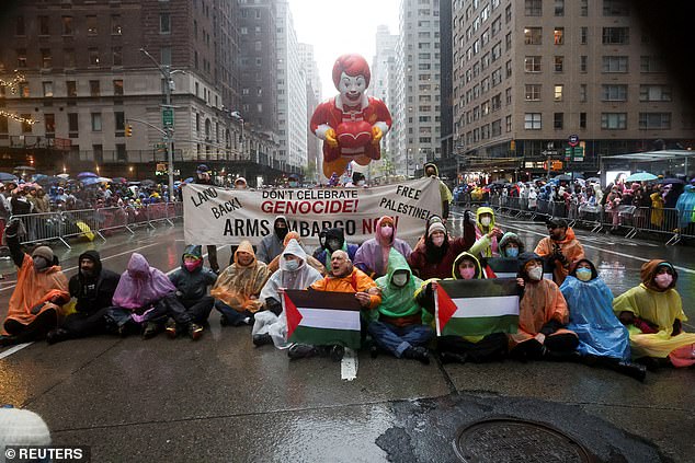 Dozens of protesters were seen trying to block the Macy’s Thanksgiving Day Parade.