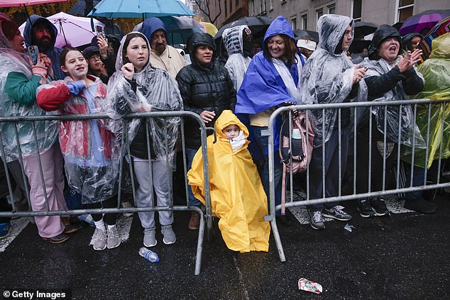 Crowds were seen booing the protesters wearing rain ponchos and flags of Palestine while cops tried long and hard to swarm them.