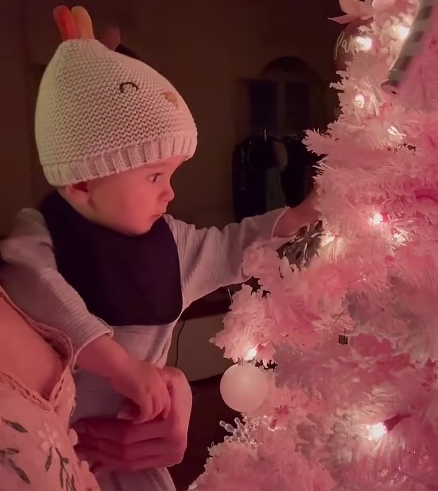 The mother also shared a series of adorable pictures in which she’s seen cradling her son in front of pink Christmas trees.