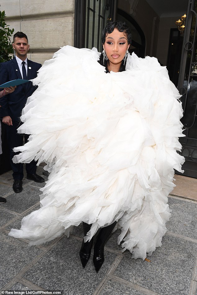 The 30-year-old rapper was representing Balenciaga in all of their glory. She really added drama of a whole new kind when she opted to wear a white-toned ruffled tulle cape while heading to the leading brand’s fashion show.