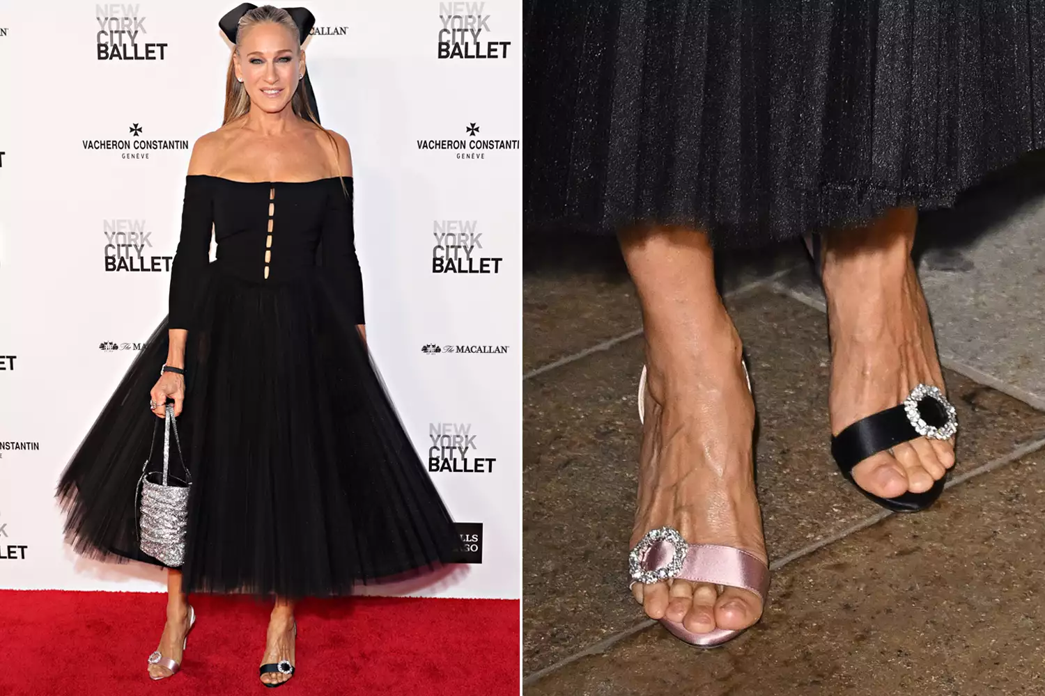 Parker appeared like a ballerina and opted to style her off-the-shoulder number from Carolina Herrera with some sold-out sandals from her own fashionable SJP collection. These are designed to be worn in a mismatched manner, she added, calling it an intentional choice and not an accident.