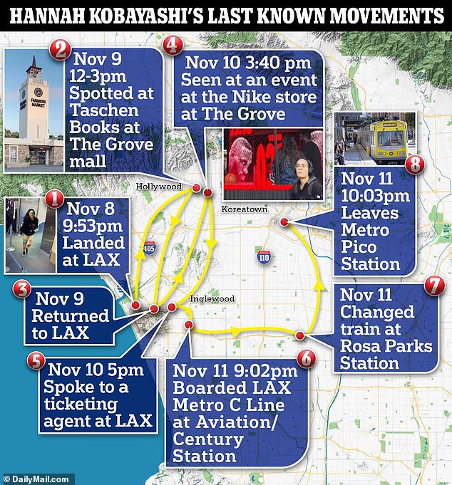 The 31-year-old aspiring photographer disappeared from the streets of downtown LA after she missed her connecting flight.