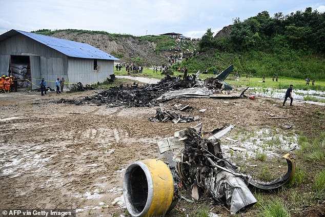 Horrifying footage showed a passenger plane crashing and killing all 18 people on board in Nepal after skidding off the runway and exploding into a giant fireball of flames.
