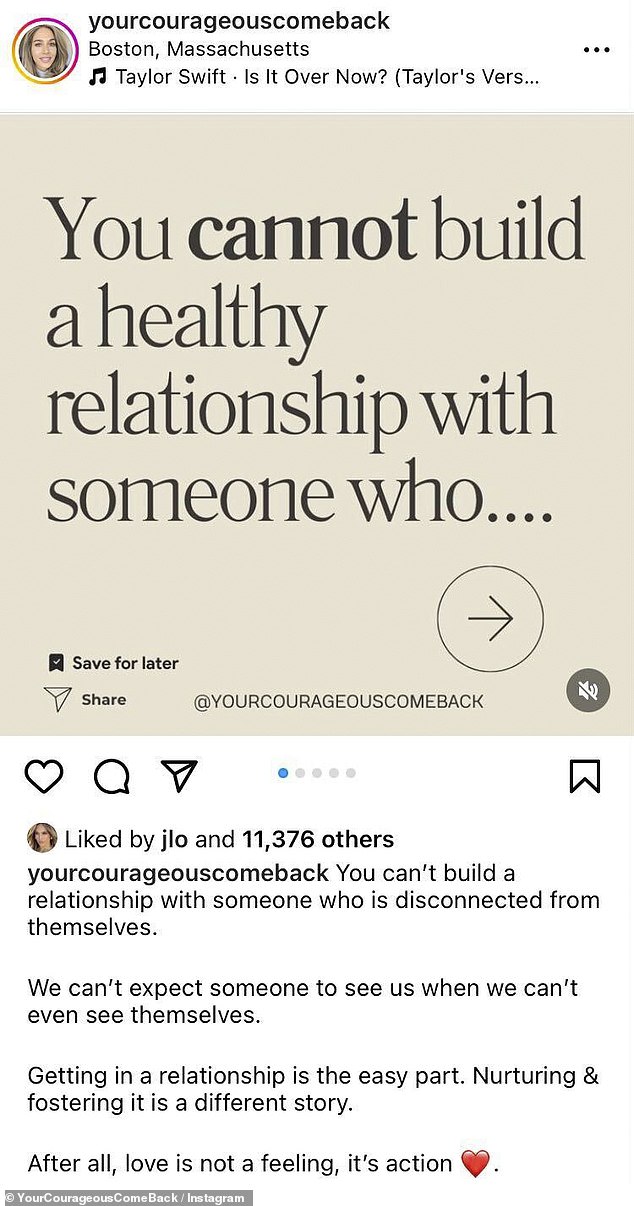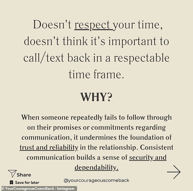 This featured a few text slides that included, ‘You can’t build healthy relationships with a person who lacks common qualities like integrity as well as emotional safety’- the post further went on to read.
