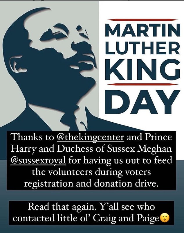 Both Harry and Meghan were reportedly praised for their relentless efforts put forward to honor Martin Luther King on his birthday, as the couple opted to purchase meals from black-owned eateries and give back to the volunteers who were hard at work in organizing events in Atlanta.